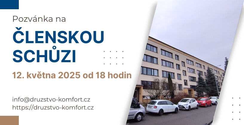 dovolujeme si vás pozvat na členskou schůzi, která se koná v pondělí 12. května 2025 od 18:00 hodin v suterénním prostoru bytového domu označeném „sušárna“ (mezi vchody 1590 a 1591).